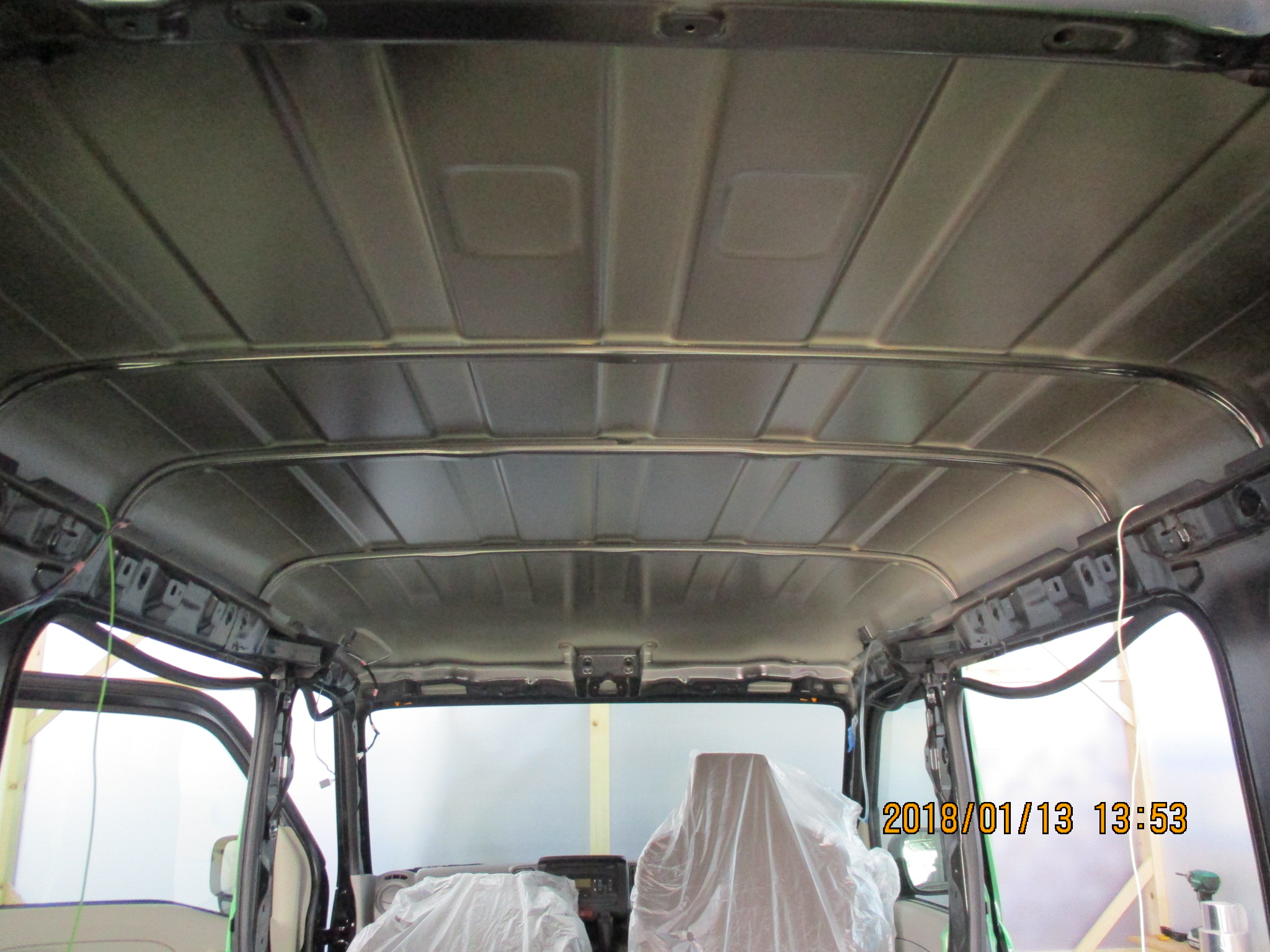 本日は、来月納車予定、Rimoの断熱施工を行っています。